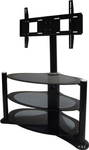 Tinted Grey Glass Unique Shape LED / Plasma / LCD Cantilever TV Stand for up to 40 inch TV brought to you by Centurion Supports. Designed featuring a rotating feature it truly unique design statement which works well in any living room environment either against a flat wall or in a corner setting. The Ultra Stylish Tinted Grey safety glass with Black Ceramic Print Border and High Gloss Black Legs Compliments today s new breed of flat panel TV s and offers a unique alternative to conventional glass stands. The rear support offers exellent cable management so no more untidy cables. The cantilever TV Stand can support TV s up to 40inch It's just what your new flat screen has been waiting for! Stunning designer Cantilever TV stand, unique high end design and built in 60 degree screen rotation. Finished in high gloss black with steel legs and toughened safety glass